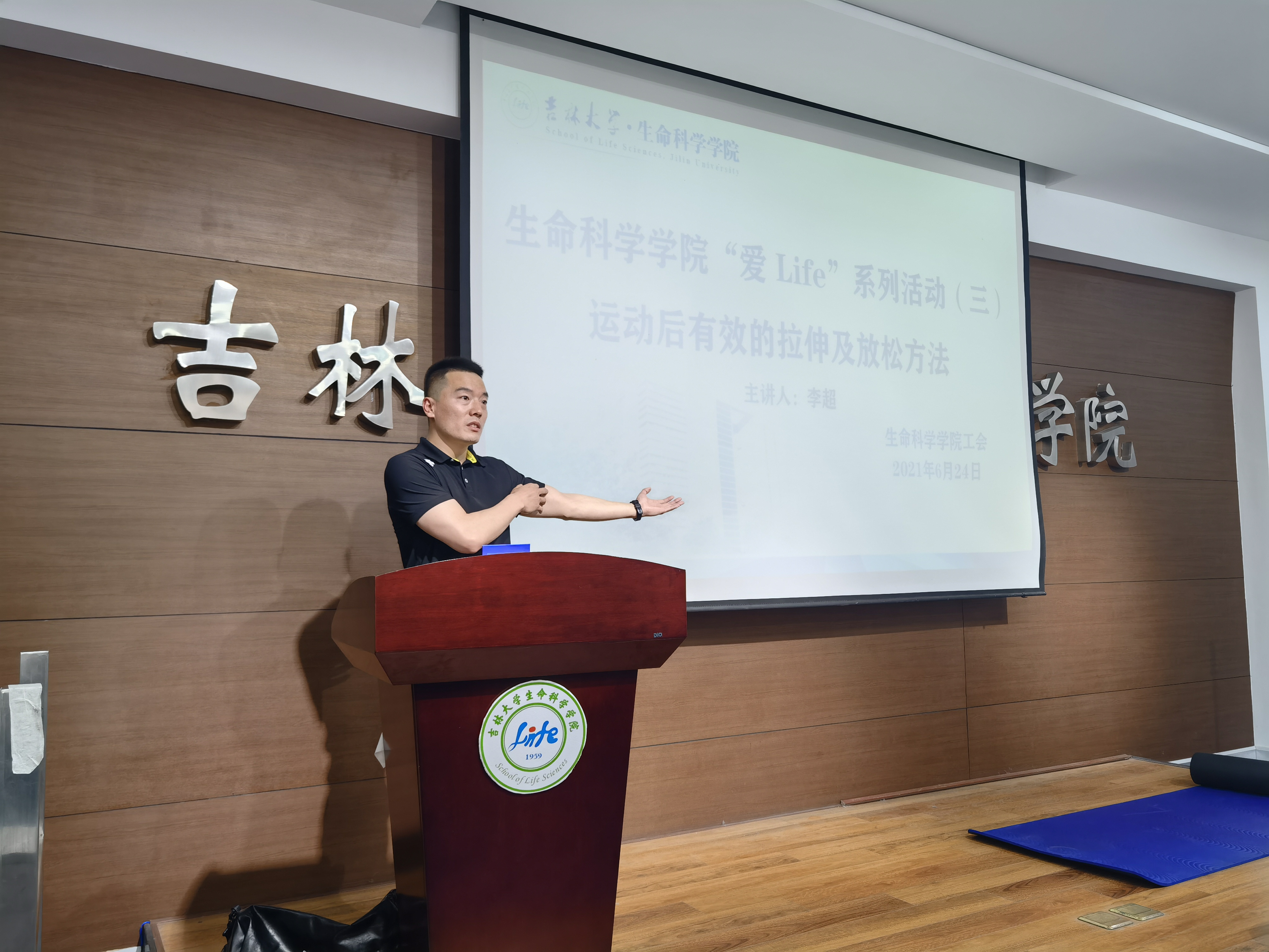 624日组织开展“爱Life”系列活动第三场—运动后有效的拉伸及放松方法。本次活动邀请从事训练修复10余年的李超教练,在生命科学楼107室,为学院教职工分享拉伸常识,活动现场李超教练结合老师提出的具体问题,现场示范,让老师们更加直观的体验到拉伸对于身体健康的重要作用。